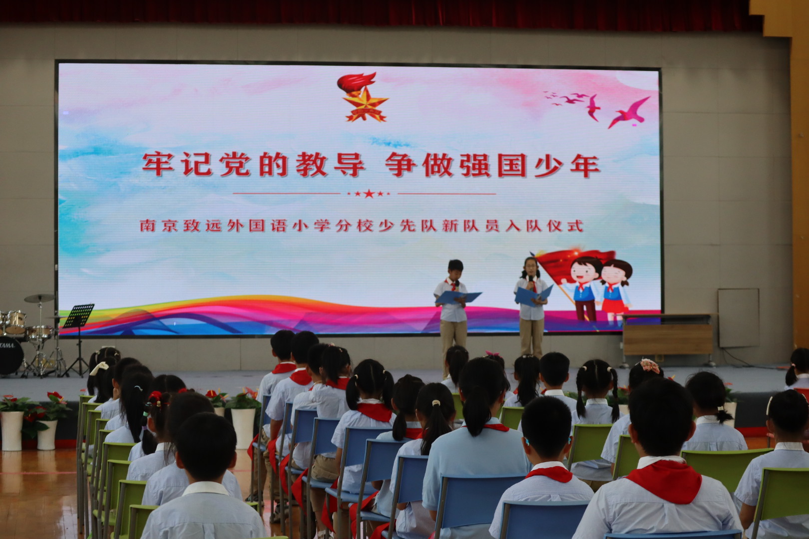 在一年级的小朋友第一批入队活动中,四1班的哥哥姐姐们有幸成为见证者和传承者,为他们系上鲜艳的红领巾。