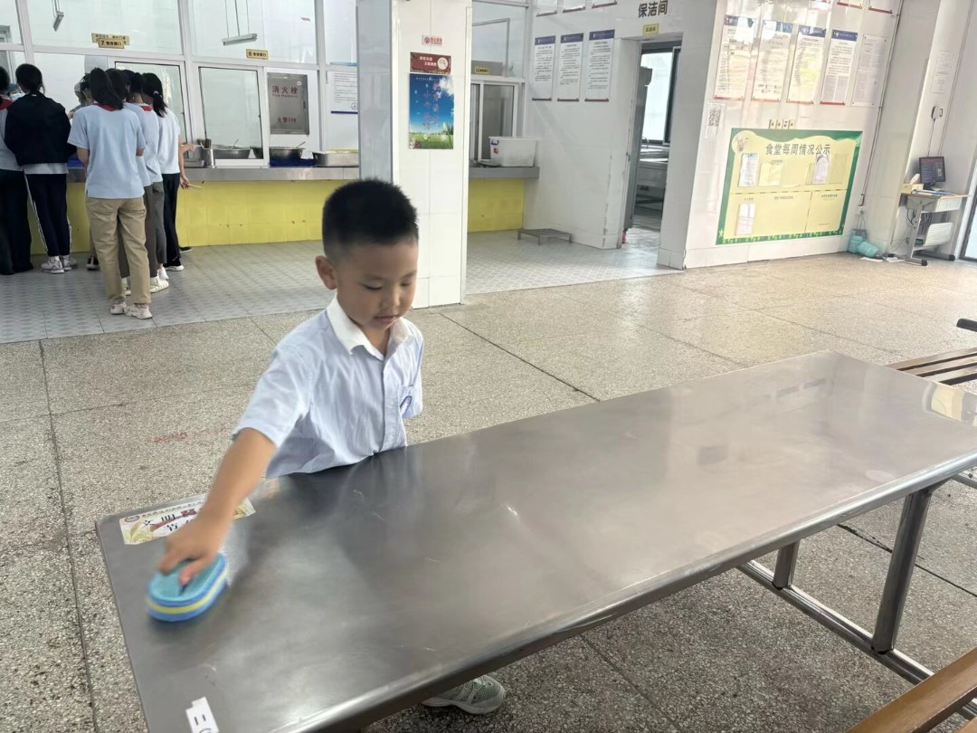 每周的食堂,二3班都会有一群值日生积极投入班级食堂服务工作。他们分工明确,有的细心打汤打饭,有的耐心维持秩序,还有的认真擦拭餐桌。孩子们用辛勤劳动为同学们营造了整洁、有序的就餐环境,展现了小小主人翁的责任与担当,成为校园里一道亮丽的风景线。