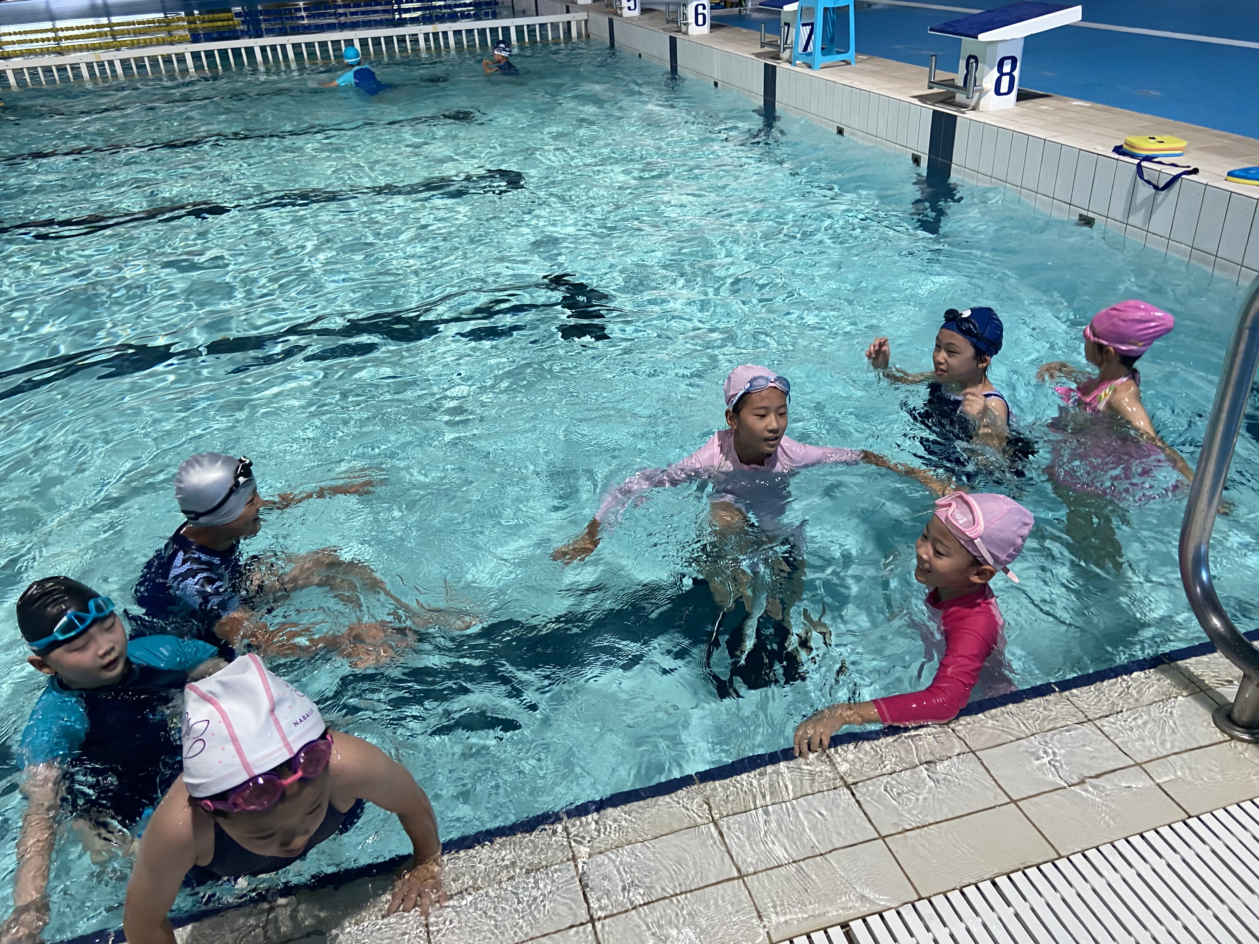 今天是我们小学生活中第一次上游泳课,我们的内心既兴奋又激动,跟着教练进行了热身运动,然后根据我们的游泳水平分了两个班进行练习。游泳既可以锻炼我们的身体,还可以锻炼我们的意志。真期待下一次的游泳课啊!