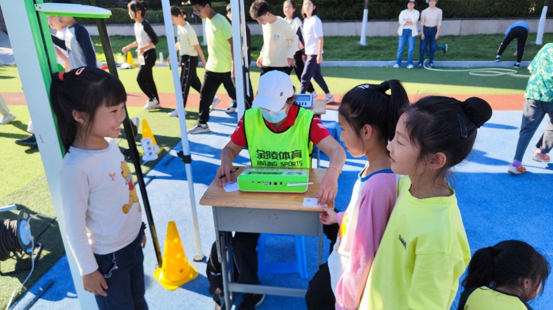一年一度的体质检测到啦,瞧,我们认真地听现场老师的指令,争取表现出自己的最好状态和水平!