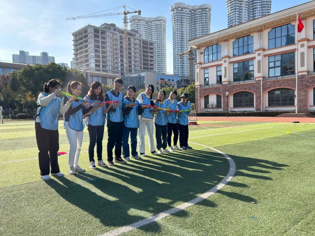 为了缓解老师们的身心压力,放松心情,更好地感受生活工作的乐趣和美好,培养团队合作的能力,12月8日下午,南京致远外国语小学分校部分骨干老师、心育中心教师以及德育名师工作坊学校的教师齐聚致远分校大操场,开展“邂逅初冬,温暖同行”团体辅导。活动特别邀请了江北新区陶老师工作站成员伍军老师带领。伍老师先带领老师面对面撑手形成“山洞”,随机形成两组团队,通过这样的热身