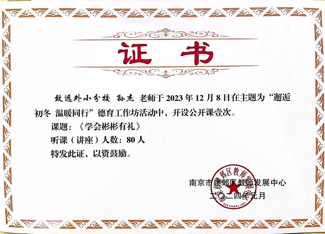 孙杰老师在2023年12月8日在主题为“邂逅暖冬 温暖同行”德育工作坊中,开设《学会彬彬有礼》公开课一节。