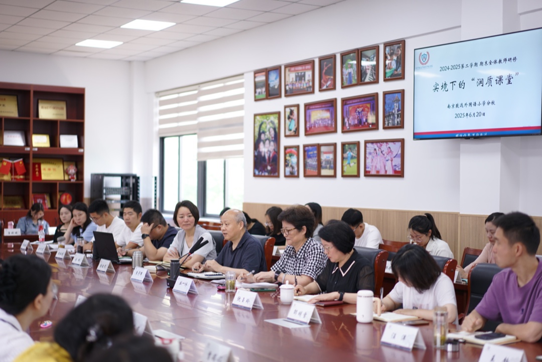 2025年6月20日,致远分校开展“实境下的润质课堂”全体教师期末校本研修活动。本次研修,有幸邀请到原南京市数学教研员朱宇辉和原致远初中丛一冰校长参与指导。课堂是教育教学的主阵地,课堂研究应该是一线教师的天职。上学期期末教师研修,致远分校开展了“我眼中‘润质好课堂’的模样”思享会,共同探讨和分享润质课堂的实践与思考。在本学期开学初的全体教师研修会上,邀请丛校