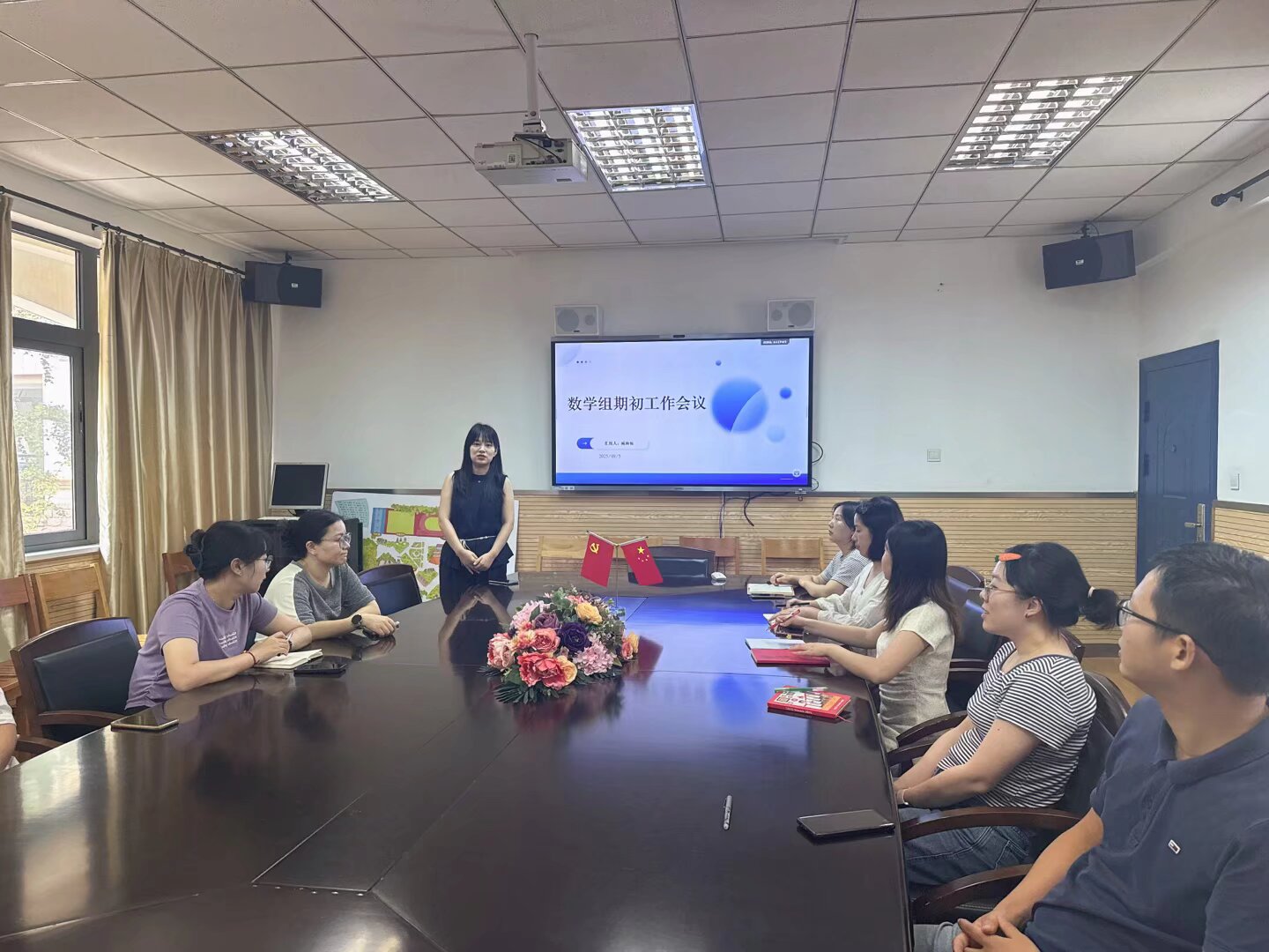 9月5日,数学组召开2025-2026学年期初工作会议,由臧楠楠老师主持并汇报,全体数学组教师参会,会议系统梳理本学期教研、竞赛、学生活动及学业质量等核心工作安排,为新学期教学工作划定清晰路径。     一、教研工作:分层推进,聚焦素养落地    本学期教研工作分区级、